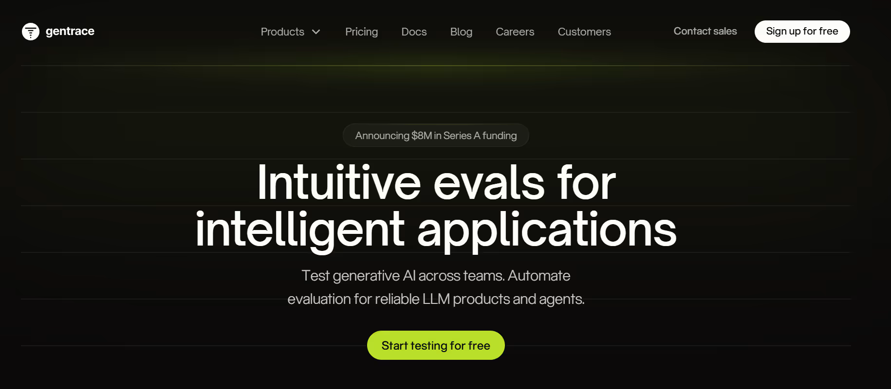 And the last benchmark in this article comes down to Gentrace. Designed and developed by the GRAFIT team, this website exemplifies clarity and purpose with their headline "Intuitive evals for intelligent applications." The straightforward wording immediately communicates their core value without unnecessary jargon.
