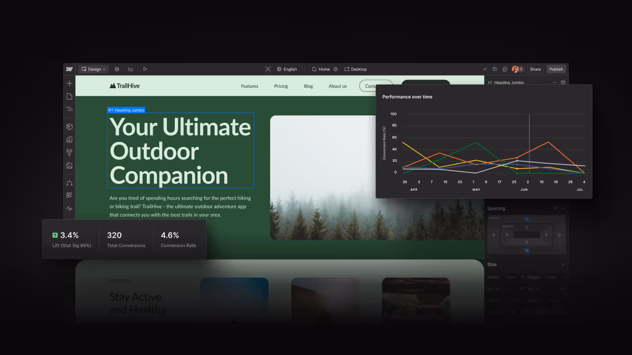 A/B testing shouldn't require a computer science degree. Webflow's AI-powered testing and personalization tools make it easy to experiment with different user experiences.