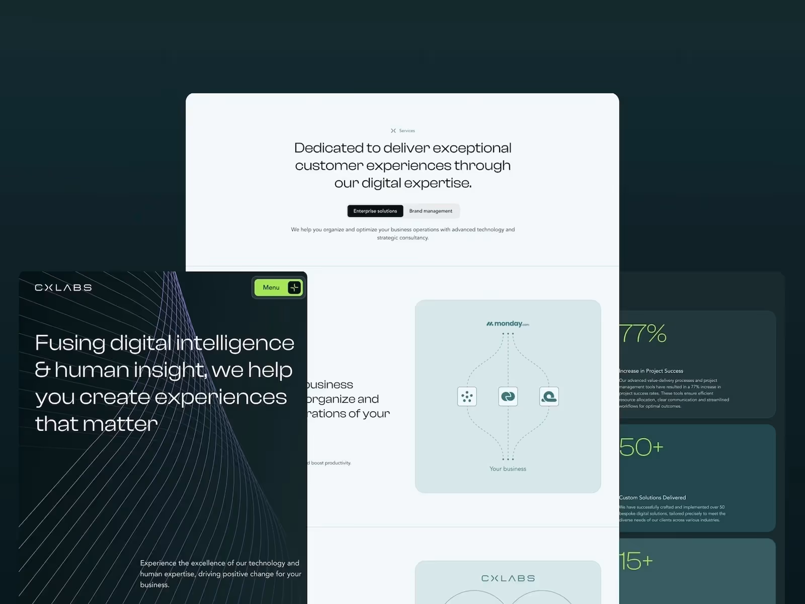 CXLABS needed a digital presence that would effectively communicate their unique approach blending AI with human expertise. We designed a high-performance Webflow website with clear service positioning and engaging case studies.