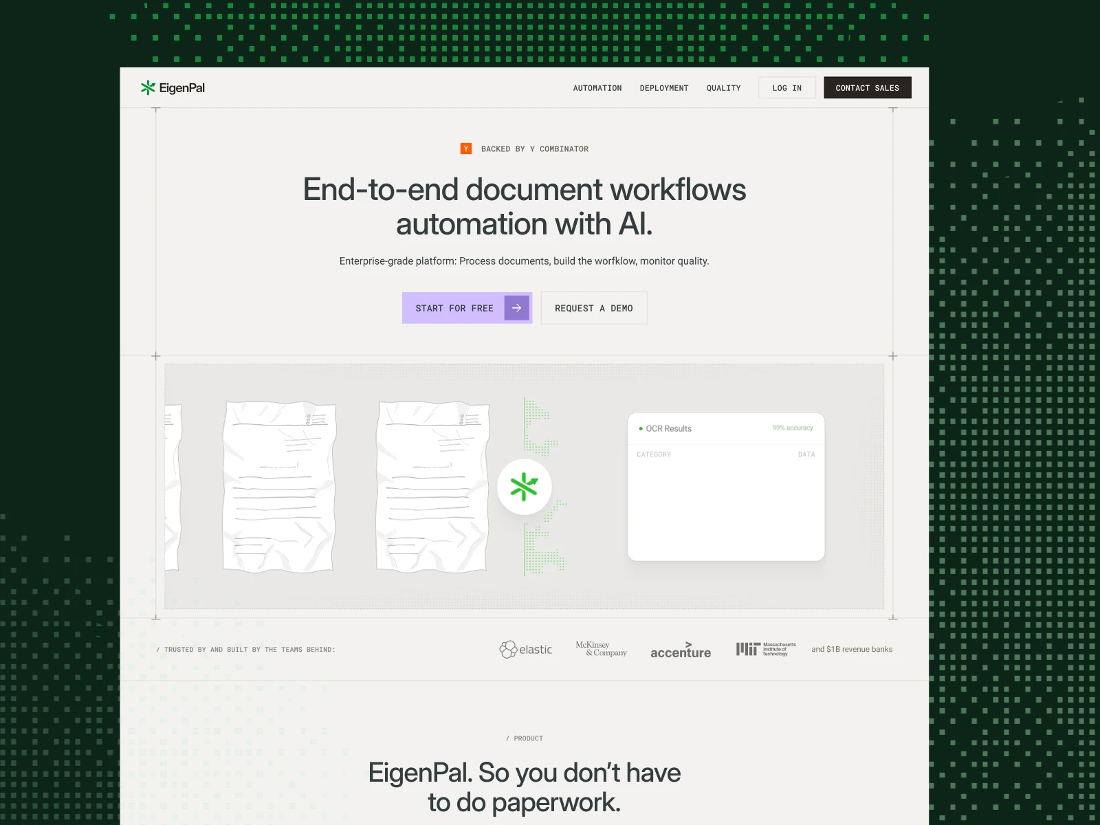 EigenPal is a Y Combinator-backed startup building trusted AI workflows for enterprise document processing. As the team prepared for YC, they needed a top-tier brand and website that could stand up to investor scrutiny and enterprise buying standards, on an super short timeline.