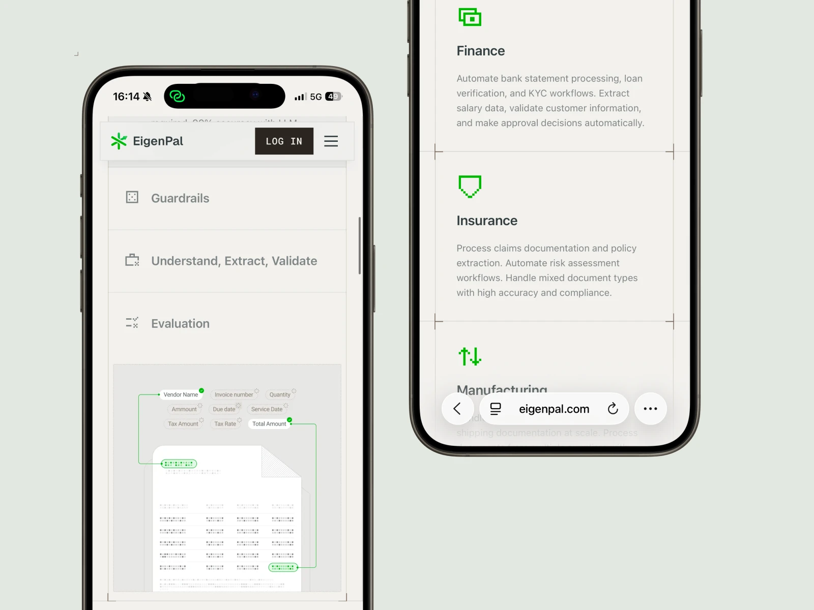 EigenPal isn’t selling hype. They’re selling AI workflows that actually work in production. The website had to explain evaluations, reliability, and document intelligence in a way that made sense to non-technical decision makers.