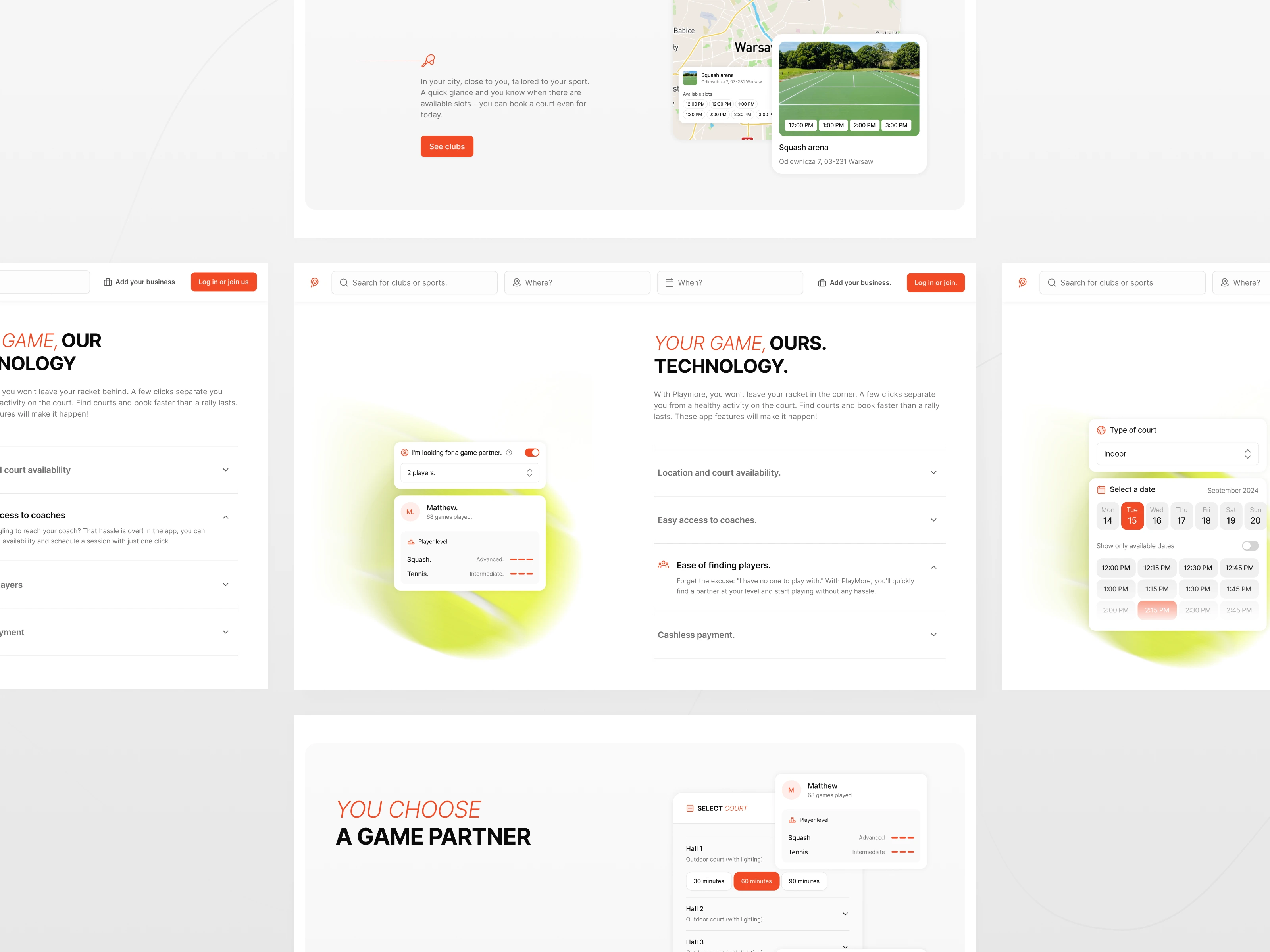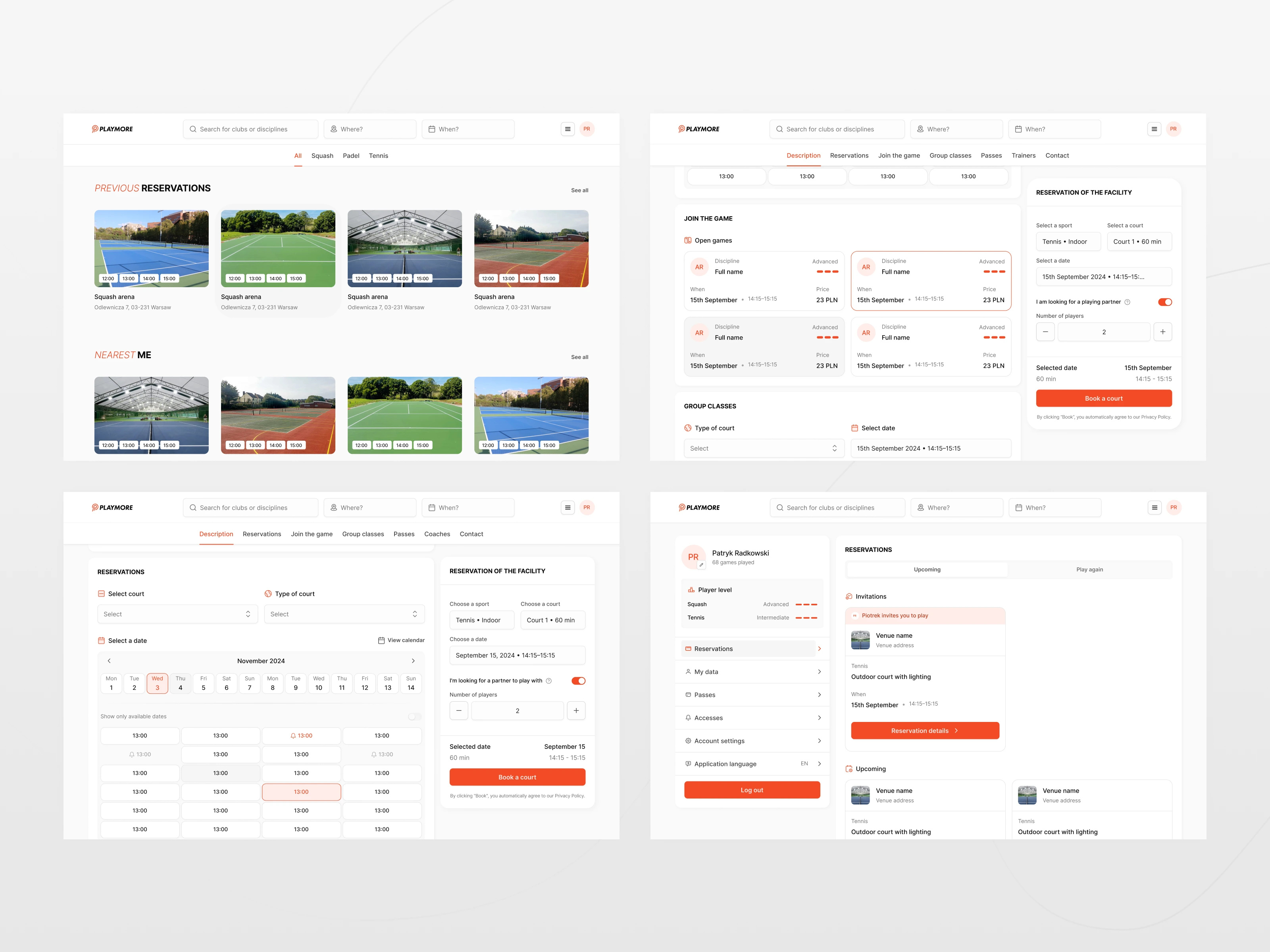 Playmore connects racket sports enthusiasts with premium courts. We transformed their brand from Reservise to Playmore with a redesigned platform that reinforced their market leadership.