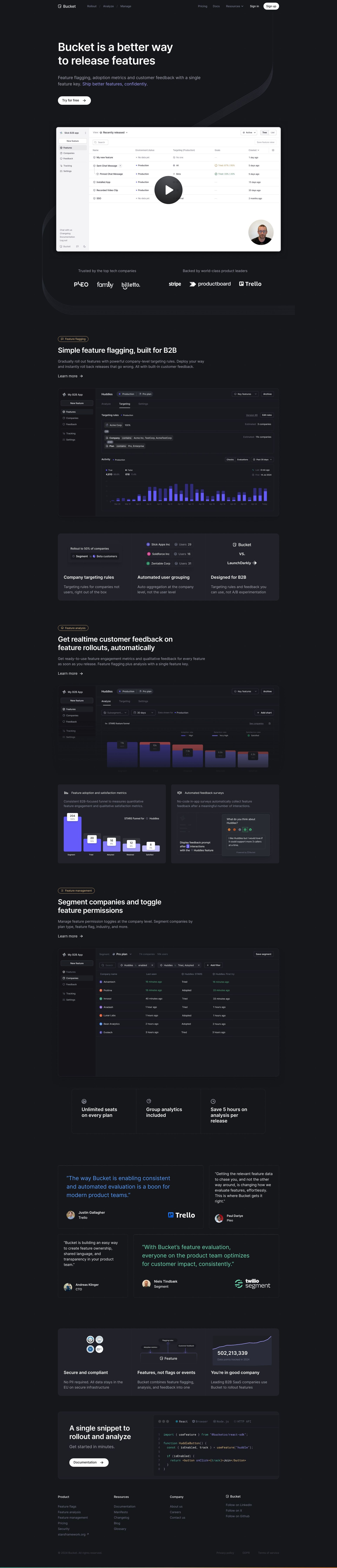 Bucket is a dedicated platform for evaluating and optimizing SaaS product features.