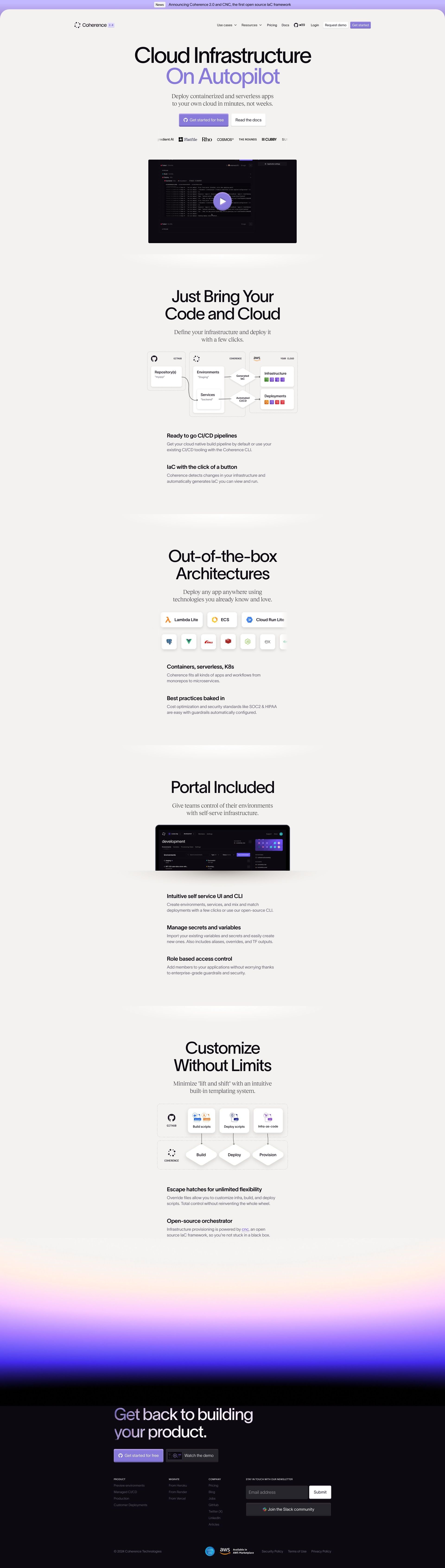 Coherence provides a seamless PaaS for easy deployment and scaling of apps on AWS and GCP.