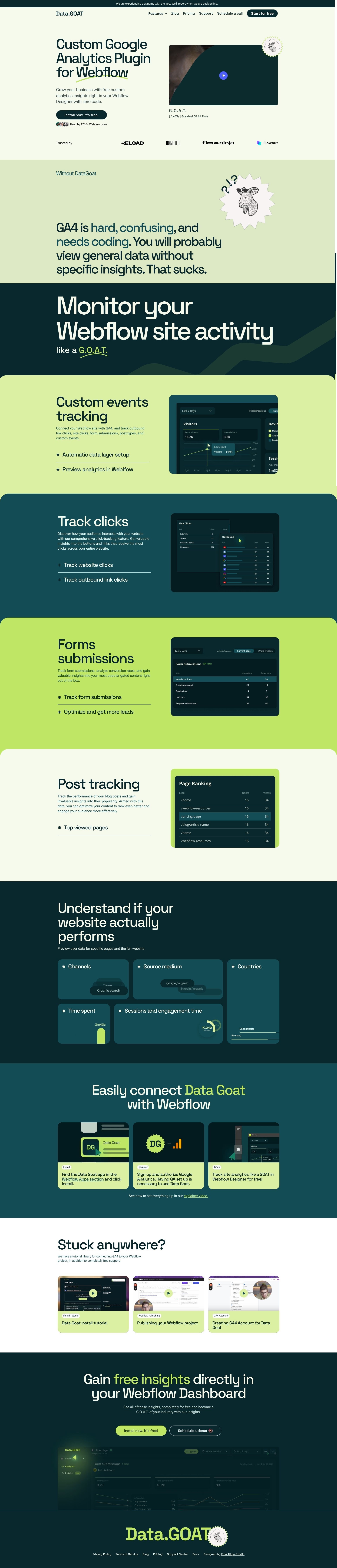 Data Goat seamlessly facilitates the integration of Google Analytics (GA4) data analysis within Webflow's design environment.