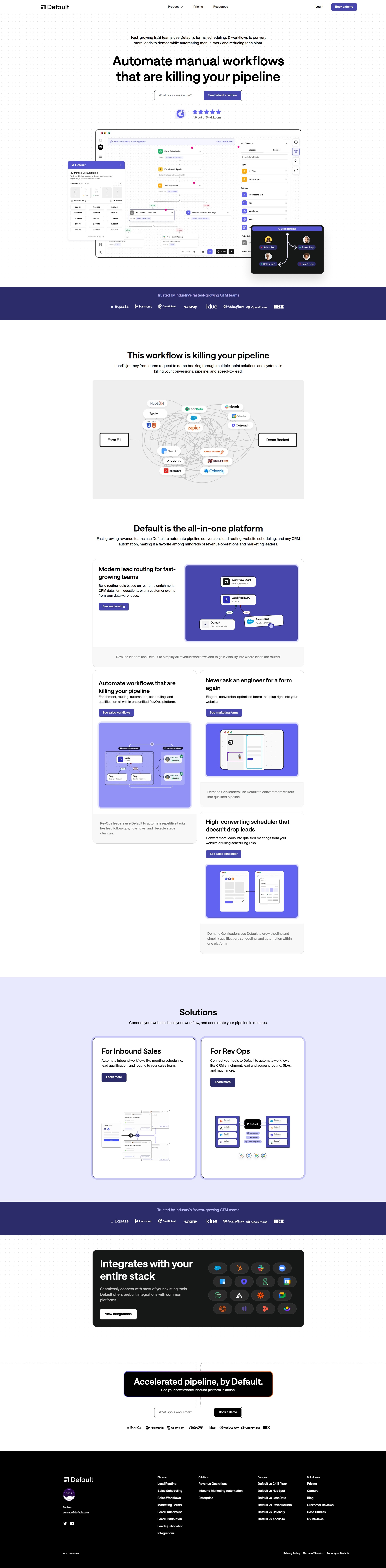 Default automates RevOps workflows for B2B teams, streamlining lead routing, scheduling, and qualification
