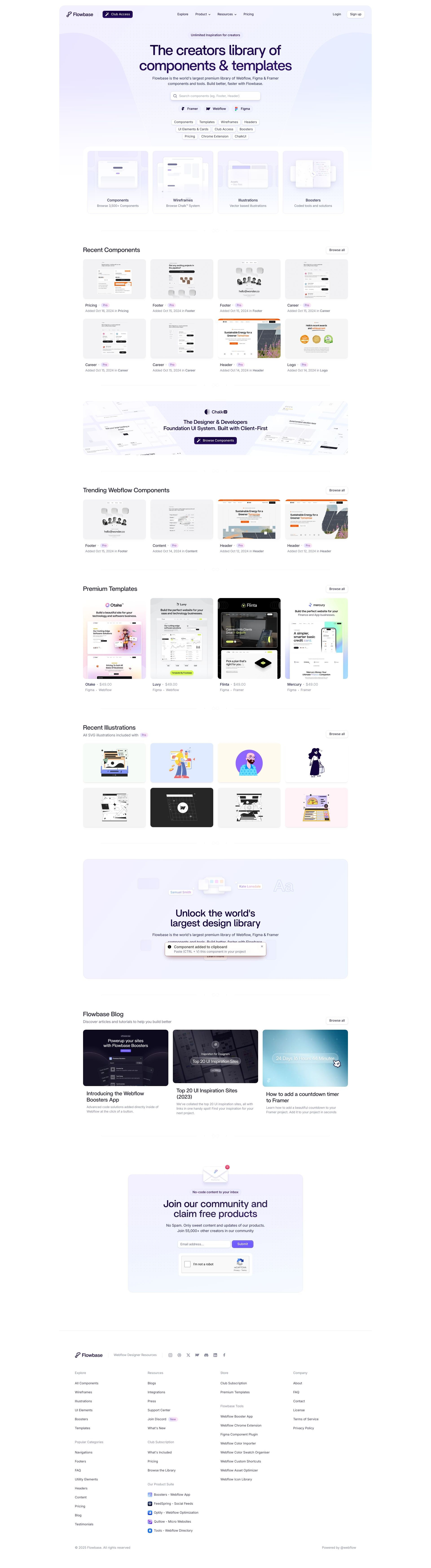 Flowbase offers an extensive library of Webflow templates and components to streamline website development.