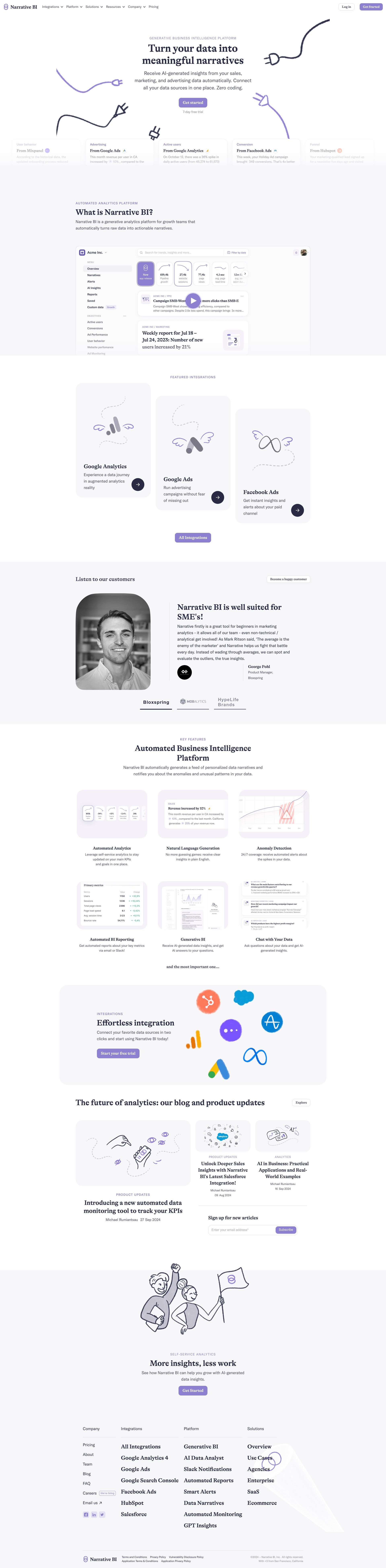 Narrative BI transforms complex data into actionable insights for growth teams, catering to SMEs with ease-of-use for all skill levels.