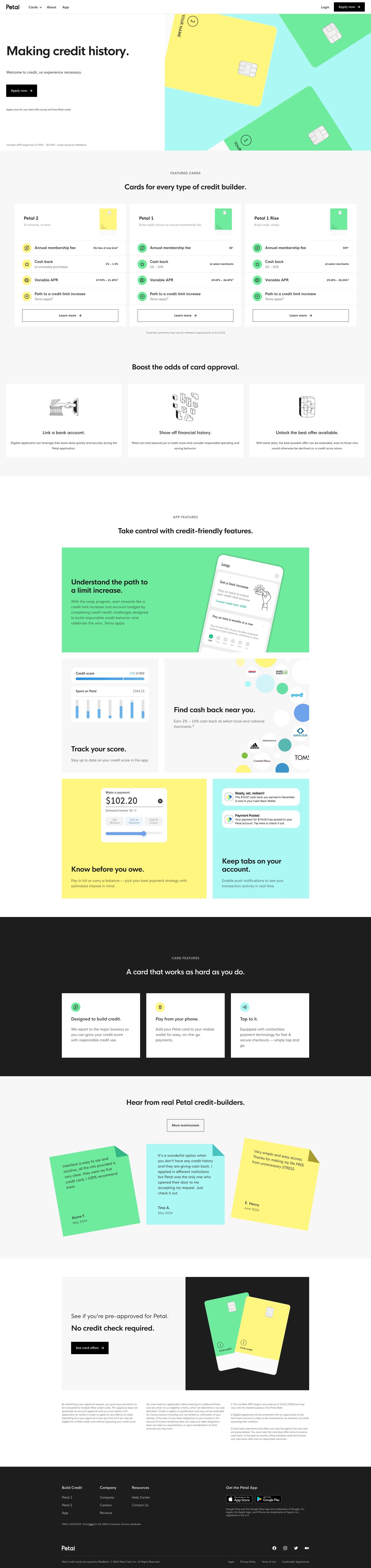 Petal offers innovative credit cards with cash back rewards, no fees, and a user-friendly app to manage your finances.