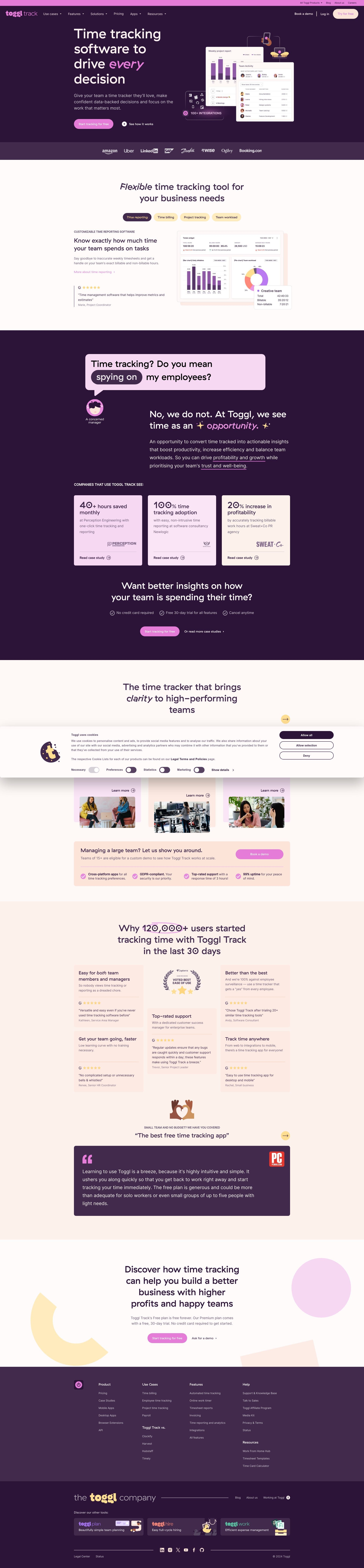 Toggl Track offers intuitive time tracking and insightful reporting to boost team efficiency and project profitability.