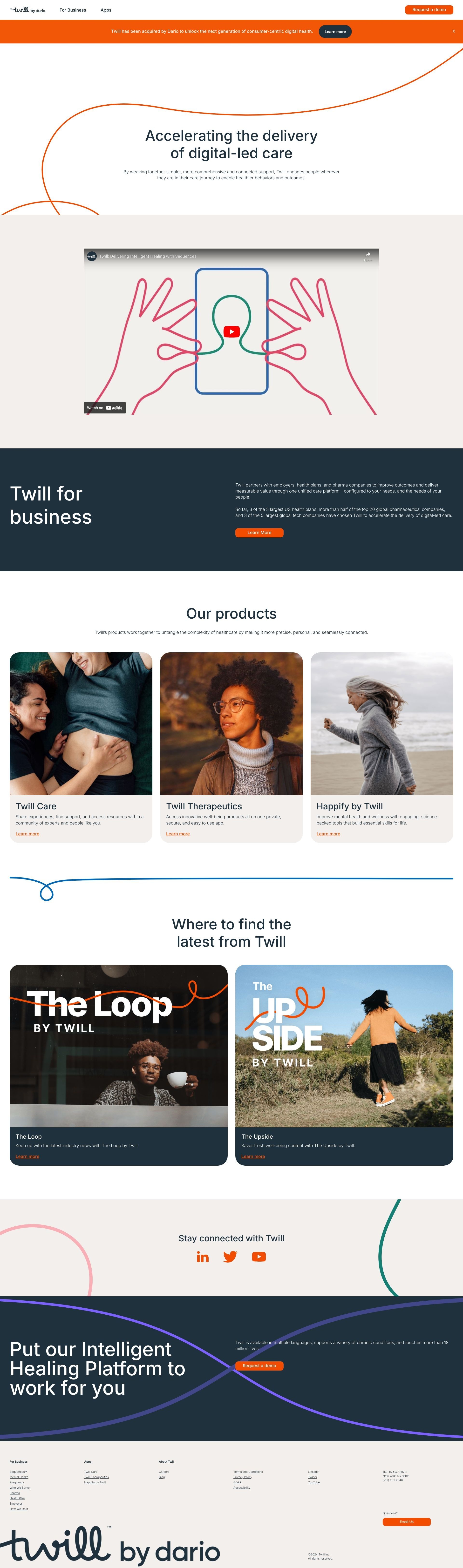 Twill, acquired by Dario, merges comprehensive healthcare support enabling consumer-focused digital health evolution.