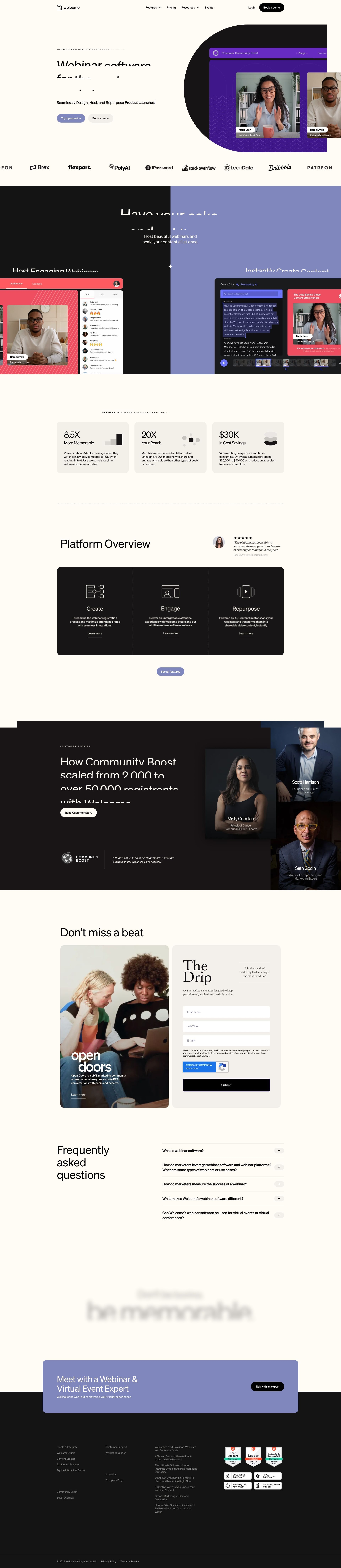 Welcome's webinar software transforms your presentations into AI-powered video content to boost audience retention and engagement.